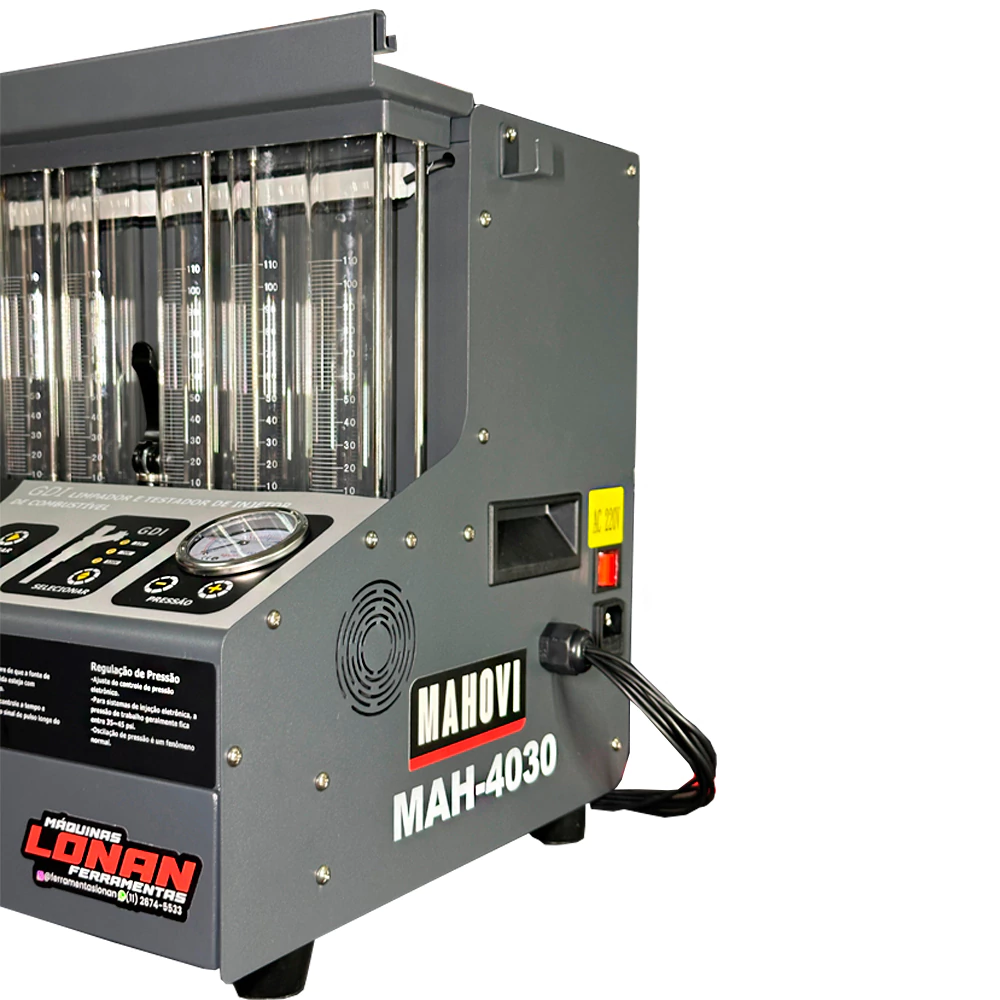 A Lonan Máquinas e Ferramentas traz para sua oficina o MAH-4030 da Mahovi, um equipamento mecatrônico completo para diagnóstico e limpeza de injetores de combustível, que combina tecnologia ultrassônica e controle eletrônico de pressão de óleo com sistema em loop fechado, tudo controlado por microcomputador.